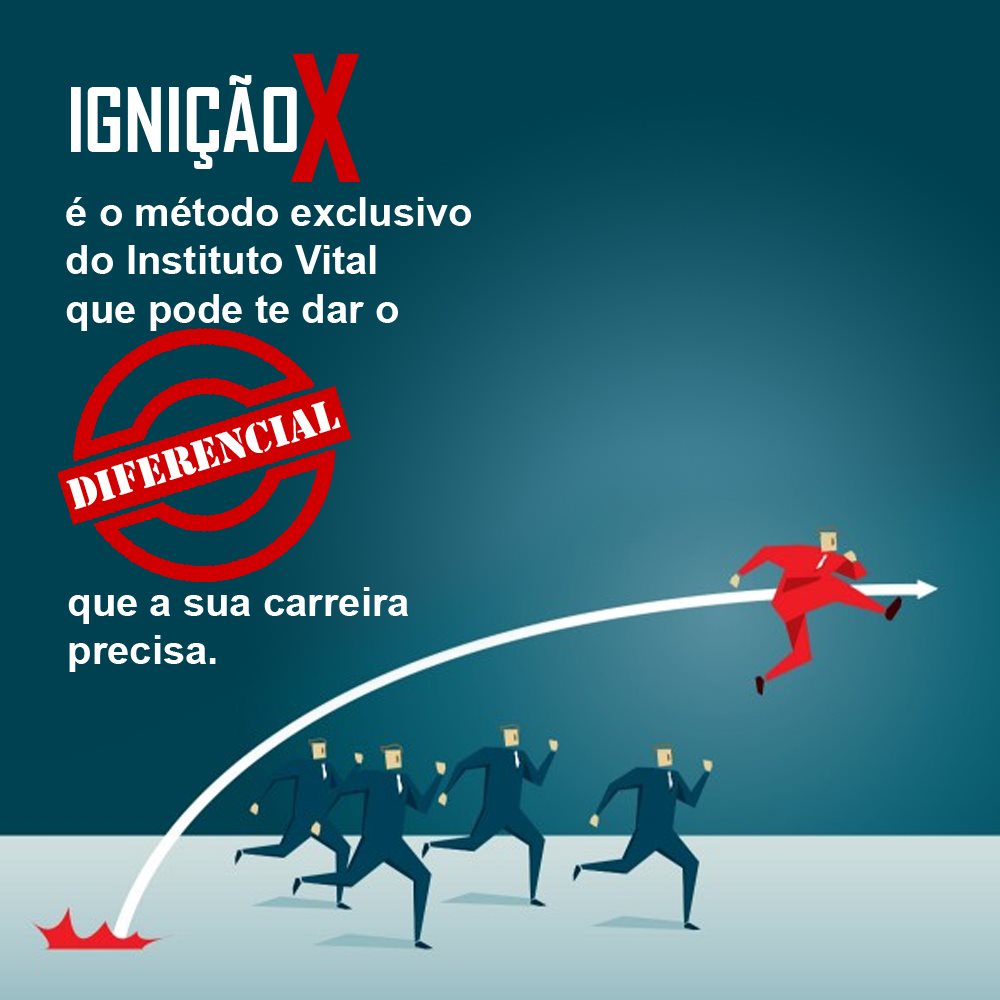 Como conseguir isso? O Instituto Vital pode te ajudar, com o exclusivo método IGNIÇÃO X, que te dá ferramentas privilegiadas, que farão total diferença nos seus estudos, vida profissional e até vida pessoal.